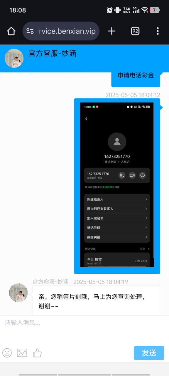 找客服碰瓷 不需要提供手机号